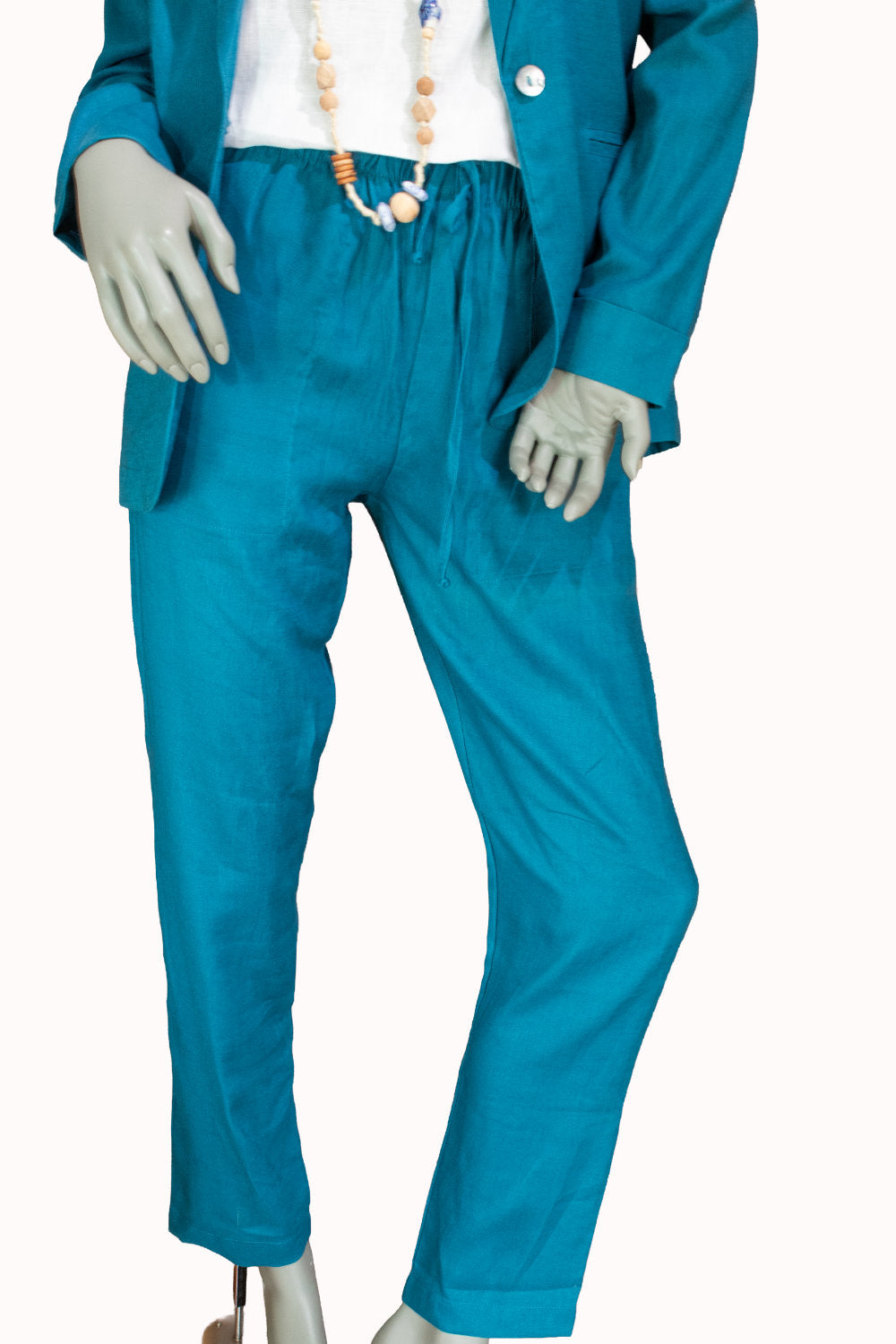 Our Paloma drawstring linen tapered pants are to die for! Comfort and style meet to create a pleasing, slim silhouette. The soft elastic waist with drawstring tie makes these pants super comfortable to wear.