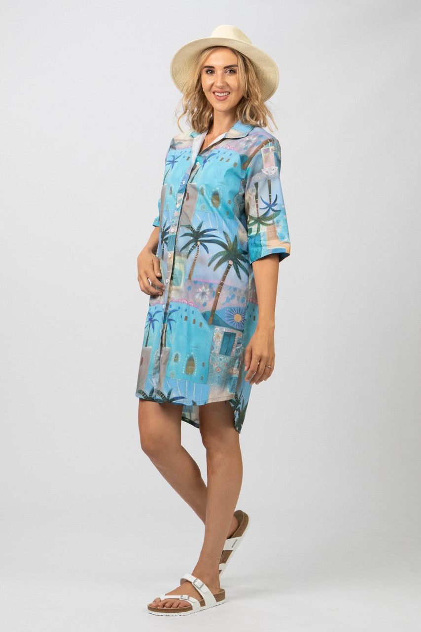Elevate your summer wardrobe with this stunning dress from DE TIAMO, crafted from 100% premium linen and 100% cotton prints. Designed with comfort and style in mind, this shirt waister dress features a flattering mid-length cut that beautifully complements all body types.