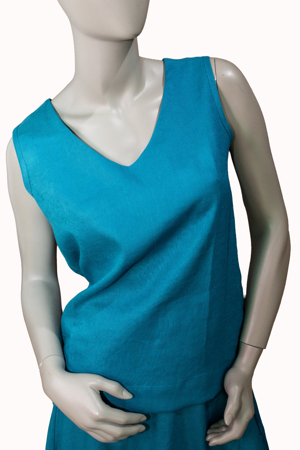 Ladies! We have added a new V-neck version to our beloved Zina Linen Tank Top collection! This latest design brings a classic elegant twist to a trending summer favourite, perfect for staying cool and stylish on a hot sunny day. Worried about the Winter cold? Linen clothing keeps you warm in Winter too, it’s a win-win! This makes it versatile and flexible garment for all seasons and reasons! The V-neckline adds a touch of sophistication to the design – creating a flattering elongated silhouette. Linen drapes beautifully, making it perfect for all body types. The sizing is very relaxed from XS – XL, so depending on the fit you prefer, choose your size accordingly. This exquisite ladies tank top is expertly hand-manufactured from 100% natural linen by our local community in KZN, South Africa.