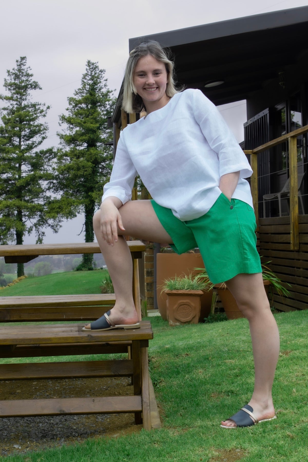 With its adaptable length, the Cleo Top allows you to create multiple looks—tuck it in at the front for a stylish, laid-back feel, wear it fully tucked for a more polished look, or leave it loose for an effortlessly chic vibe. Choose from our two stunning Spanish cotton prints for a bold, colourful statement, or opt for a classic linen shade for timeless elegance.