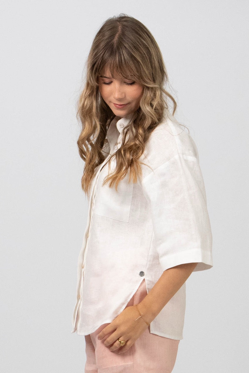 Elevate your wardrobe with our stunning Della Shirt, an essential piece that combines comfort and versatility. Crafted from both 100% linen and 100% printed cotton, this shirt is perfect for any season!